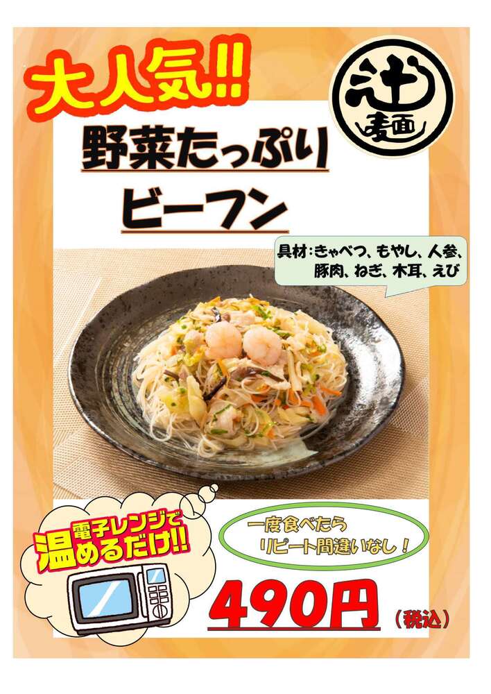 お知らせ 大人気!「野菜たっぷりビーフン」販売開始✨ 2026.01.17 大人気の「野菜たっぷりビーフン」が復活しました!電子レンジで温めるだけで簡単にお召し上がりいただけます😊一度食べたらまた食べたくなること間違いなし♪皆様のご注文をお待ちしております❗
