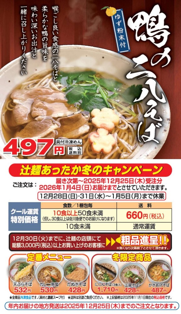是非、御歳暮や年越しそばは辻麺の冷凍めんをご利用くださいませ🌟
