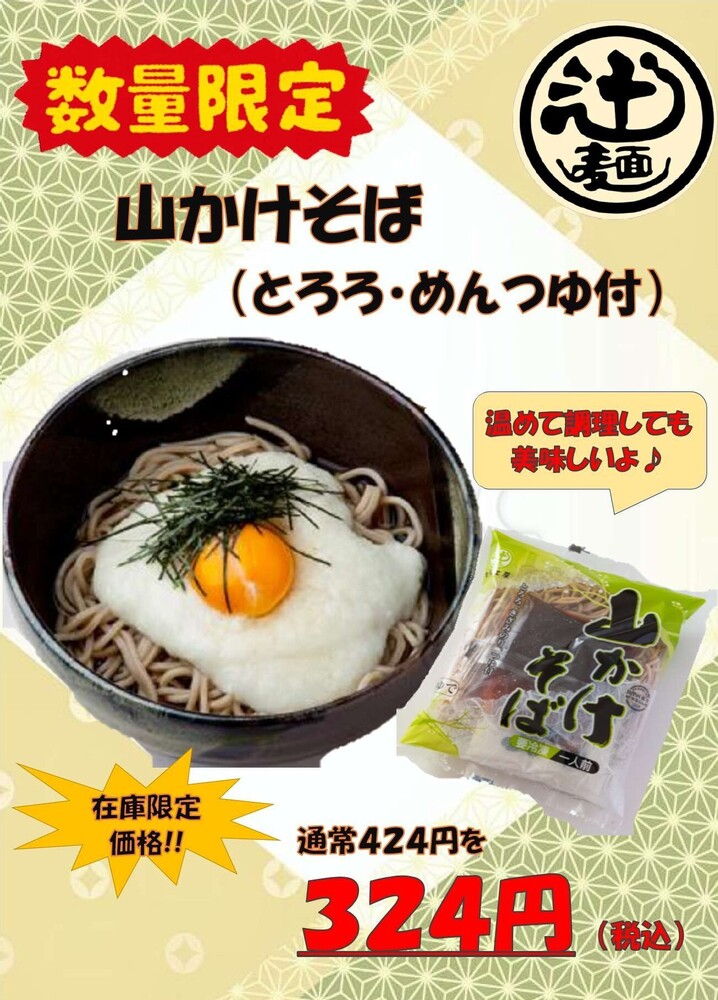 夏季限定の山かけそばを在庫処分の為値下げいたしました💫